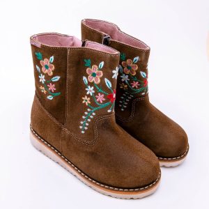Botín Cremallera Flores Serraje