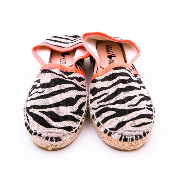 Nueva Alpargata clásica con puntera tradicional en lona RAYAS CEBRA  suave efecto piel de melocotón para niños, niñas. Realizada en Lona Etan 100% algodón de primera calidad y con acabado en rayas cebra . Es una calidad de lona totalmente nueva muy suave y que convierte las alpargatas clásicas de toda la vida en un producto muy chic y con mucha calidad y diseño. Son suaves, blanditas y muy flexibles, perfectas para adaptarse a todo tipo de empeines. Son un modelo clásico totalmente renovado y actualizado en cebra de plena moda para la primavera- verano. Combinan con todo y son muy prácticas y confortables para el día a día.