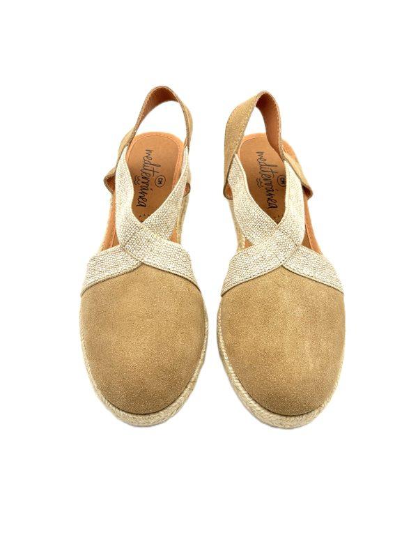 Alpargata en ante con con elásticos cruzados con cuña de 2 cm, suela de yute