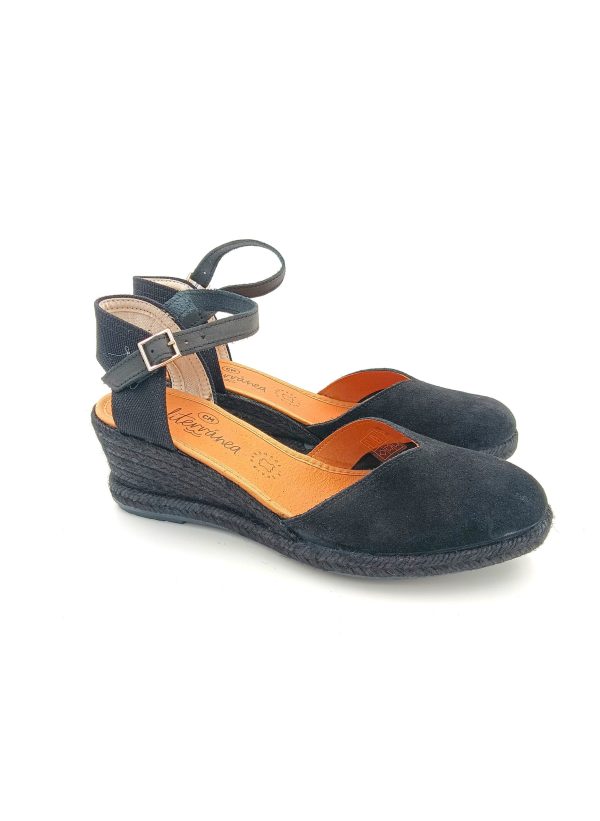 Estas elegantes alpargatas están confeccionadas en suave ante negro, un material que aporta distinción y sofisticación a cualquier look veraniego. Su cuña de 5 cm en yute natural eleva ligeramente la silueta sin sacrificar la comodidad, ideal para lucir estilizada durante todo el día. La suela de goma proporciona un excelente agarre, perfecta para paseos estivales tanto en ciudad como en la costa.