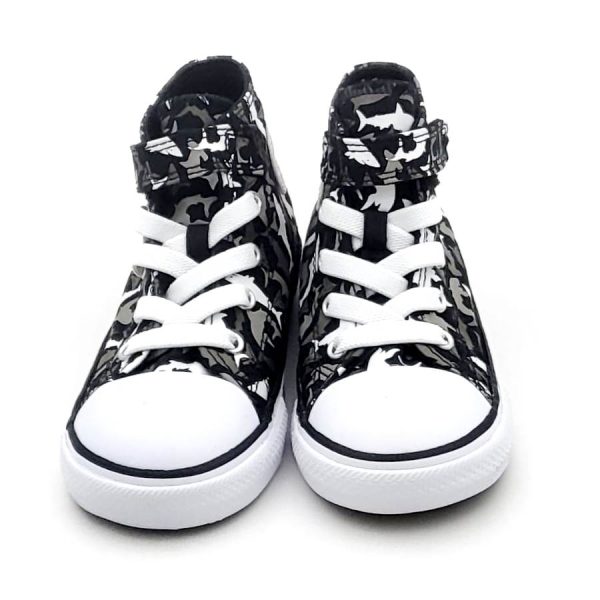 Si a tu pequeño le gustan los tiburones, le encantarán estas zapatillas Converse. Un estampado de tiburones inspirado en el camuflaje da un giro divertido pero feroz a un clásico. Garantizan que causarán sensación en el patio de recreo. Zapatillas altas de lona con cordones elásticos fijos y correas fáciles de poner. Plantilla SmartFOAM para la amortiguación. Te recomendamos seleccionar mínimo media talla menos de la que usas habitualmente. TALLAS 23 AL 26