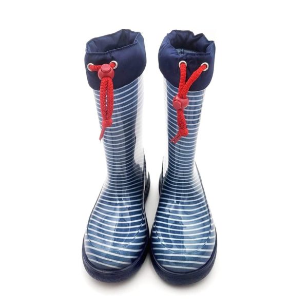 Bota de agua con cuello ajustable estilo náutico para pequeños en rayas y cierre con cordon ajustable