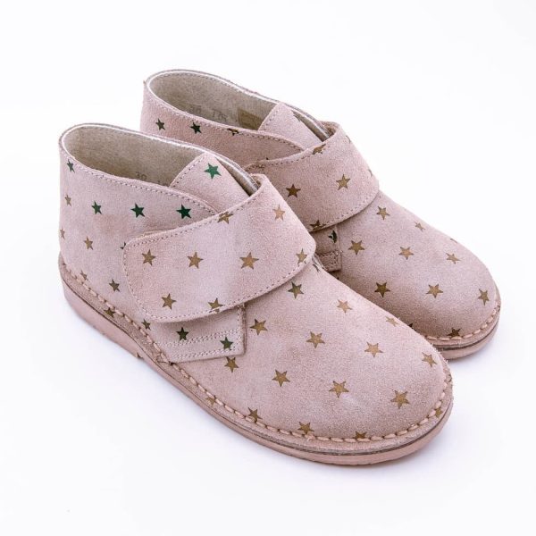 .Bota Safari o Pisacacas con velcro y estampado con ESTRELLAS en piel serraje para niños y niñas.