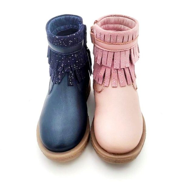 Botita con diseño con FLECOS Y BRILLOS, con puntera y talonera y cierre con cremallera en piel napa para niños y niñas. Con cierre con cremallera lateral para una mayor comodidad. Realizada en 100% piel napa natural y acabados de primera calidad. Perfectas para el día a día porque combinan con cualquier look. Muy cómodas y confortables. Es un modelo diferente, muy estiloso y combinable con toda su ropa este otoño-invierno. Con diseño con flecos tan de moda esta temporada en todas las colecciones infantiles.