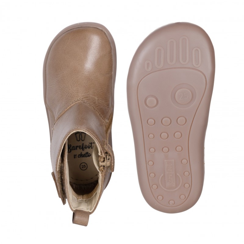 Botita para niñas en napa piel con cierre de cremallera y velcro con suela de goma