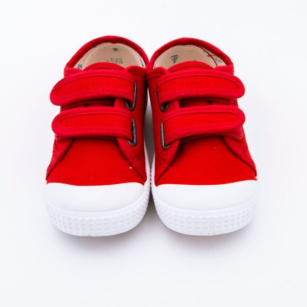 Zapatilla de lona 100% algodón, con cierre de doble velcro y puntera reforzada para los pequeños más inquietos. Lavar en agua fría no sin antes extraer la plantilla.