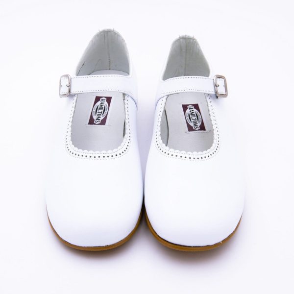 Nueva Mercedita clásica con diseño con ondas o festón y picados 1 punto y cierre con hebilla en piel napa lisa en color BLANCO. Muy elegantes, novedosas y blanditas. Combinan con todos sus vestidos y conjuntos en cualquier temporada. Son como las merceditas de toda la vida pero actualizadas y totalmente renovadas. Realizadas en 100% piel napa natural BOXCALF de primera calidad en color BLANCO. Todas nuestras pieles son de máxima calidad y suavidad en calidad. Forradas totalmente en piel, con plantilla de piel anatómica que facilita el crecimiento evolutivo de sus pies y perforada para la correcta transpiración de sus pies.