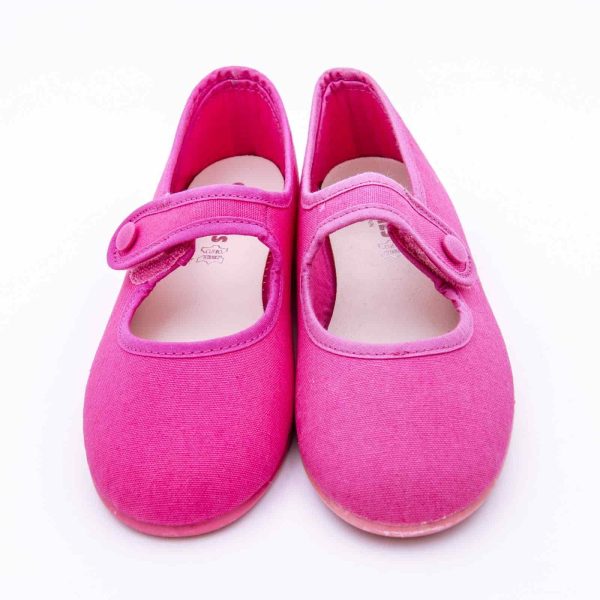 Mercedita de lona con cierre de velcro y botón de adorno. Con suela de goma muy flexible. La lona juncal es una lona de calidad muy resistente y apropiada para los días de primavera-verano y entretiempo. Esta lona es muy resistente y tu niña la podrá llevar durante todo el día. Es un calzado imprescindible, un básico que no puede faltar en el armario de tu niña. Ideal para utilizar con o sin calcetines, ya que tienen la plantilla en piel transpirable. Con el cierre de velcro en el empeine, el pie quedará muy sujeto y tu niña podrá ponerse ella solita el calzado! Un calzado perfecto para usarlo a diario y para combinar con todos los looks de tu niña. Fabricada 100% en España con materiales de primera calidad.