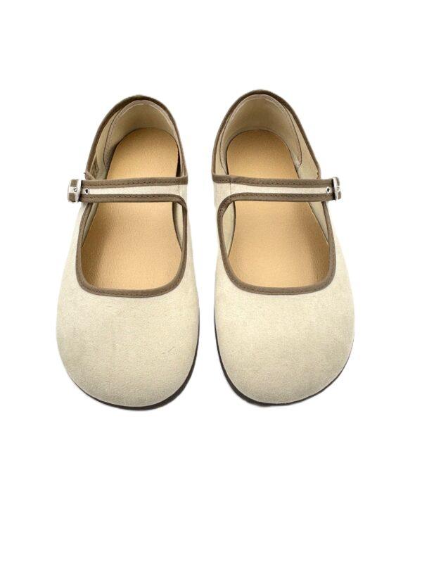 Mercedita en lona BAREFOOT con hebilla en piel ante y suela de goma