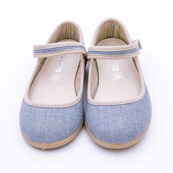 Mercedita en lino en color índigo, con ribete en camel, cierre de velcro. Con plantilla de piel y suela de goma muy flexible. Fabricadas en lino natural 100% algodón y forradas totalmente en algodón, haciendo de este zapato un calzado muy cómodo y fresco para utilizarlo en primavera-verano. Es una mercedita clásica, pero con un diseño renovado gracias al ribete en camel y al cierre de velcro con terminación en botón al tono del ribete. La tira para atar al tobillo, le da un toque de sofisticación y elegancia, que hará que tu niña esté preciosa. Ideal para utilizarlo en cualquier ocasión. Lucirá perfecta en esos eventos más especiales, pero también lo podrá combinar con looks más informales, tanto con vestidos, como con jeans pitillos. No puede faltar en el armario de tu niña. Fabricado 100% en España con materiales de primerísima calidad. TALLAS DEL 25 AL 35.
