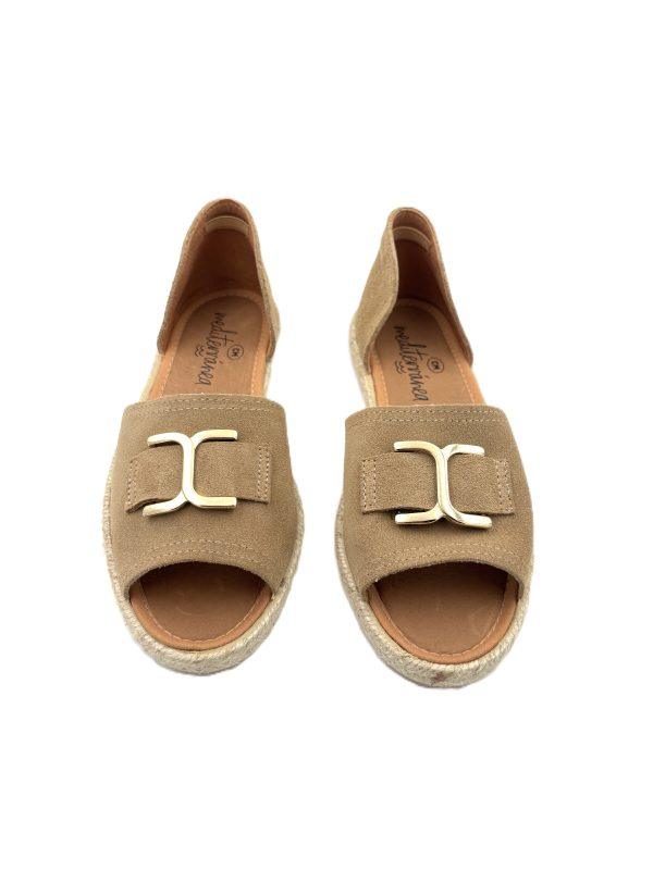 Sandalia ante cerrada con suela de esparto y cadena de oro