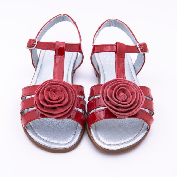 Sandalia para vestir con diseño con ROSETA en el frente en piel Charol en color ROJO. Con cierre de hebilla para una perfecta sujeción y adaptabilidad a todo tipo de empeines. Realizada en 100% Piel Napa natural de primera calidad con acabado charol y en color ROJO. Perfectas para vestir esta primavera verano. Combinan con toda su ropa esta temporada y son muy elegantes. Son un modelo muy elegante y estiloso. Modelo especial en charol rojo para combinar con todos los conjuntos de tu niña esta primavera verano.