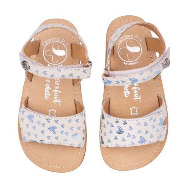 Sandalia de piel BAREFOOT en piel con velcro y estampado de corazones