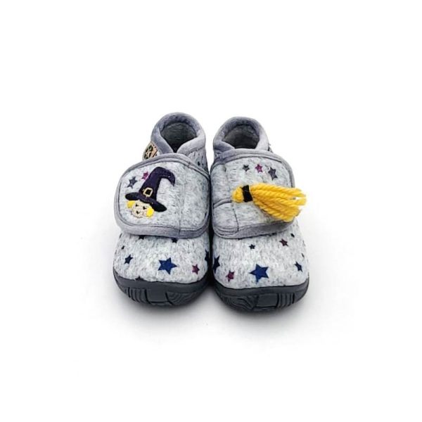 Nueva zapatilla para casa tipo Botita en lona lana con diseños súper divertidos con cierre adherente y forro de abrigado de lanita para niños y niñas. Realizadas en lona 100% algodón efecto lana con diseños muy novedosos y divertidos sin cordones y con acabados de primera calidad. Muy confortables y calentitas para estar en casa este otoño/invierno. Combinan con todos sus conjuntos y pijamas para estar en casa esta temporada. Son un modelo muy novedoso y dulce. Con diseño de BRUJITA BUENA.