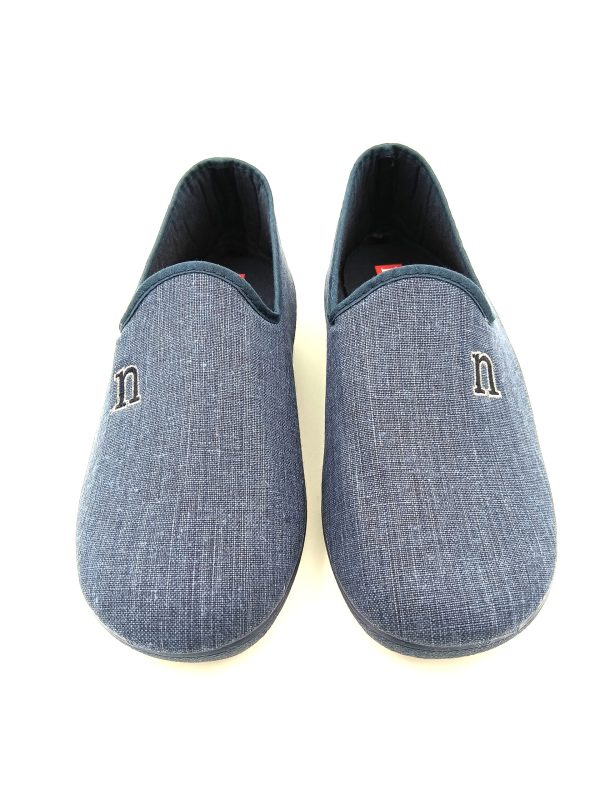 Zapatilla de casa para hombre cerrada de algodón natural con suela de goma