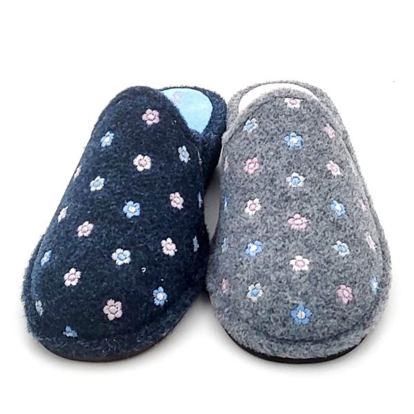 Nuevas Zapatillas para casa abiertas en algodón natural suave para mamás. Realizadas en 100% textil suave y acabados de primera calidad. Muy confortables y calentitas para estar en casa este otoño-invierno. Son un modelo con 2 cm de tacón tipo zueco y con diseño de florecitas de Liberty y con suela de goma al tono, quedan muy bonitas con todos los pijamitas para esta temporada de otoño invierno. Son un modelo muy utilizado para poder pisar la cocina sin estropear la suela y además este modelo viene con plantilla acolchar por lo que da un mayor confort