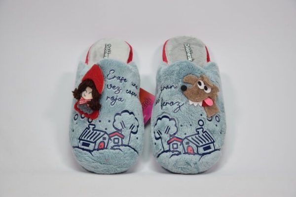 Zapatillas de Algodón Azul con Estampado de Caperucita y el Lobo