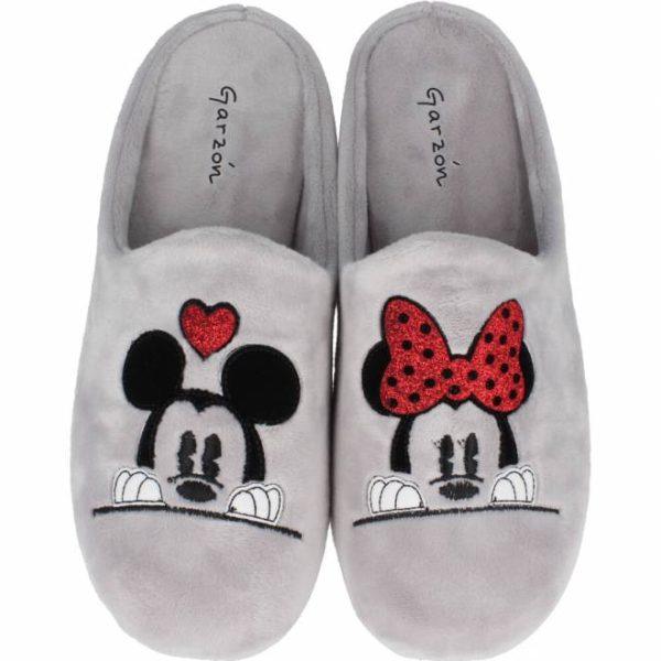 Zapatillas de mujer para casa en algodón natural con estampado de Mickey Mouse con suela de goma antideslizante