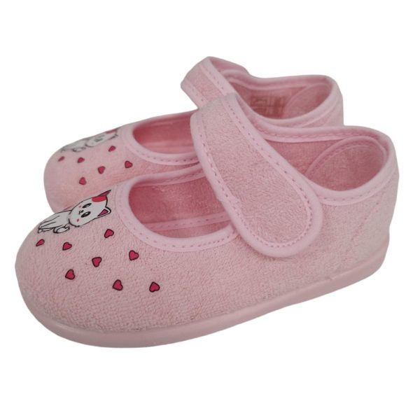 Zapatillas para casa con cierre de velcro adorno de gatito y con suela de goma