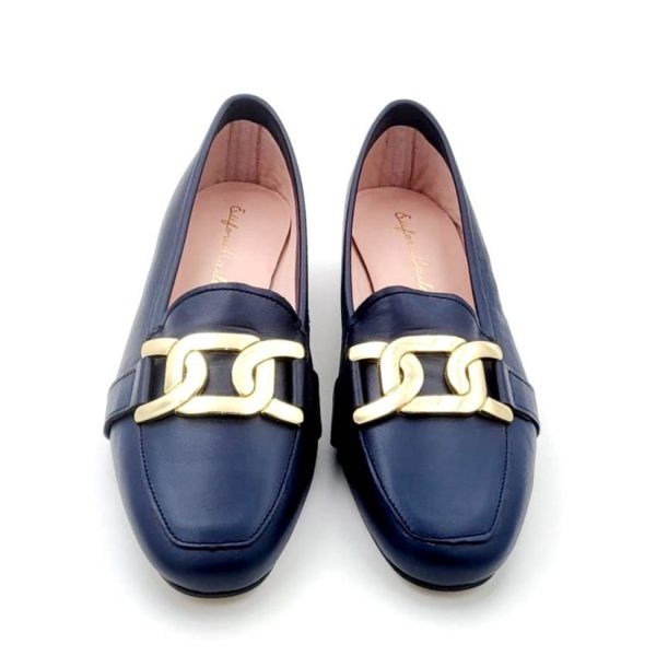 Zapato mocasín en napa piel con adorno de cadena y pespunteado en el empeine . Llega la primavera y con fuerza interrumpe el mocasín más de moda que nunca para las mamas que tienen que correr de un lado para otro y al mismo tiempo estar bien conjuntadas es imprescindible tener en el armario este zapato que es un autentico comodín . PIELES SUAVES Y ADAPTABLES a todos los tipos de pie. EXCELENTES CALIDADES como todos nuestros zapatos HECHOS EN ESPAÑA 100% cuna del mejor calzado mundial. Plantilla de piel y suela de cuero con tacón bajo y tapa antideslizante para un mayor agarre. DISPONIBLE EN CUATRO COLORES SUPÉR ACTUALES Y ELEGANTES.