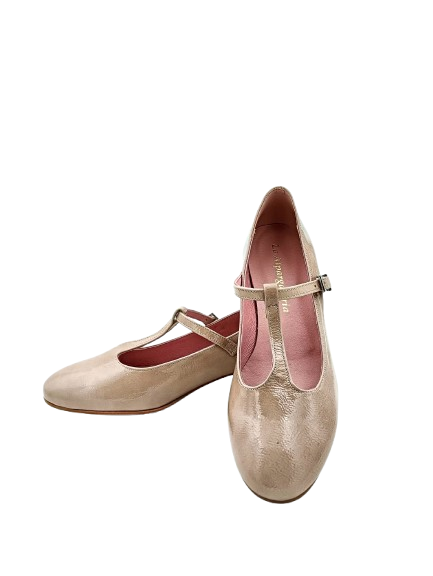 Zapato vestir en forma de T con cierre de hebilla tacón de 2 cm y suela de cuero
